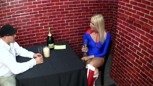Supra Girl is very annoyed but the fan begs for some of her time and she agrees to give him a few minutes, and have little more champagne since it is so good. Unfortunately it is made with just a little green krypotonite. Not enough to really hurt her, just enough to make her weak and pass out just like her ‘fan’ planned all along. He puts her over his shoulder and brings her to the next room to strip and fondle her. Has a camera setup to record this greatest moment of his life as he enjoys himself on her limp body