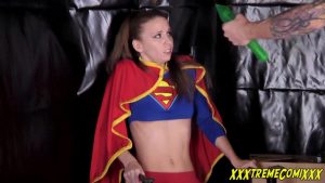 Supergirl confronts the evil MaX CoXXX, but he is ready for her. As she nears, ready to bring him to justice, he surprises her with the largest piece of Kryptonite that she has ever seen. Weakened by the power-stealing crystal, she is helpless against the might of MaX. Pushing her down into a chair, he threatens her with the phallic shaped shard, poking her in belly, exposing her pert boobs and nearly bare pussy, shoving it between her virginal butt cheeks and threatening to fuck her with it.