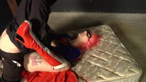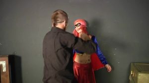 Supergirl is on the run! Two men were hired to capture, disable and unmask her on camera in front of the nation and the world. Supergirl won’t go down easy and puts up a fight, but with the help of a kryptonite laser, she is disabled and the villains have some fun with her, deflowering her before the nation. Then they get her with the brain zapper, which turns anyone into a vegetable, supergirls included, once zapped, they unmask her. They then tie her up like a puppet and humiliate her, flopping her body around like a ragdoll. Then supergirl starts to come to and the villains are forced to strangle her while she is still weak.